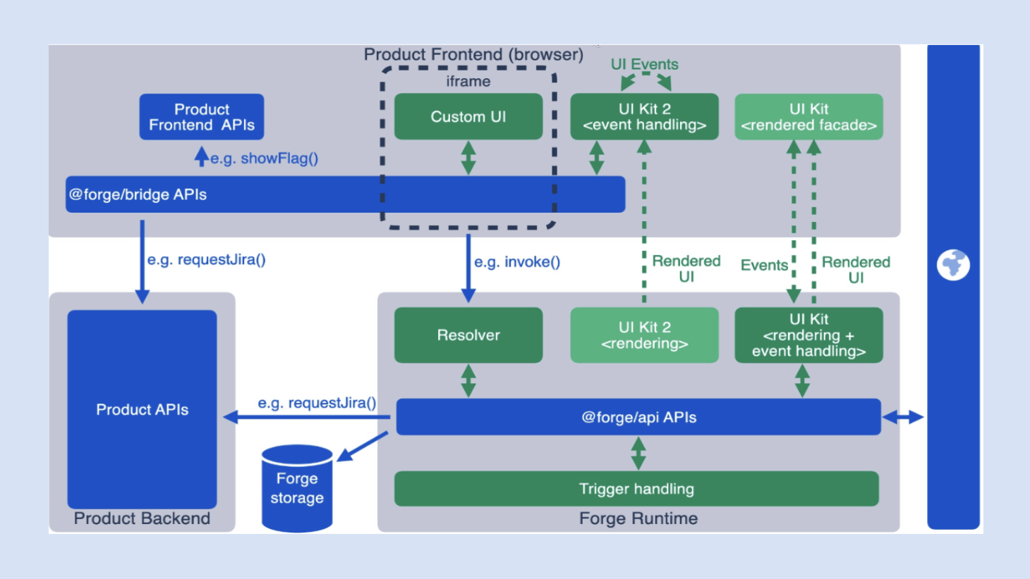 - Apps run on Forge’s serverless architecture, meaning backend functions execute on demand without requiring developers to manage servers.