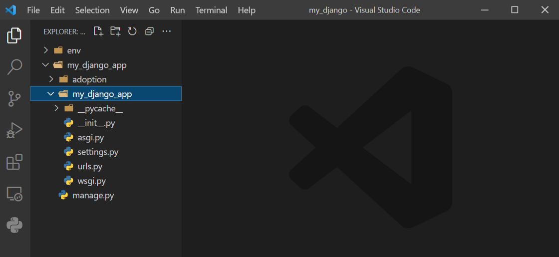 You can see the my_django_app folder that I have created. It has inbuilt files such as asgi.py, wsgi.py etc. I won’t get into details but here’s a short introduction to all these files.